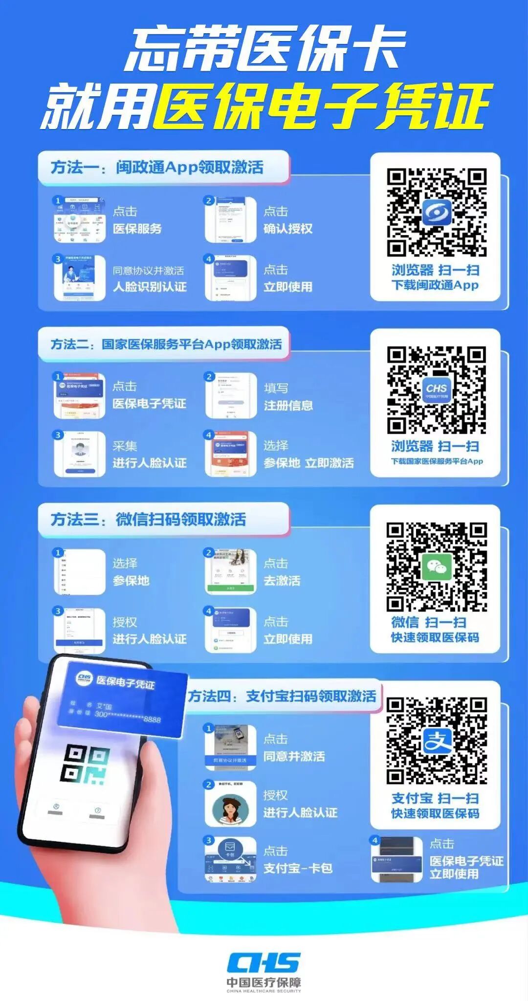 診間結(jié)算,需要患者提前在手機上申領(lǐng)好電子醫(yī)??ǎ娮俞t(yī)保憑證),您可以通過微信、支付寶、國家醫(yī)保服務(wù)平臺APP、閩政通APP領(lǐng)取激活。