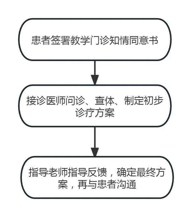 教學(xué)門診是教學(xué)醫(yī)院根據(jù)教學(xué)的需要設(shè)立的兼顧患者診療和住院醫(yī)師教學(xué)的獨(dú)立門診。在患者知情同意的情況下,由住院醫(yī)師獨(dú)立完成門診接診,具備豐富經(jīng)驗(yàn)的副主任醫(yī)師或主任醫(yī)師從旁指導(dǎo),師生合力解決患者的問題。一方面可以在帶教老師的指導(dǎo)下,快速訓(xùn)練住院醫(yī)師的看診能力;一方面可以延長患者門診時間,更詳細(xì)地了解病情。