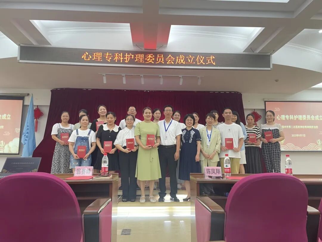 為推動(dòng)醫(yī)院護(hù)理學(xué)科的發(fā)展,提升護(hù)理隊(duì)伍心理護(hù)理專(zhuān)業(yè)技術(shù)水平和服務(wù)能力,福州市第二總醫(yī)院神經(jīng)精神病防治院心理專(zhuān)科護(hù)理委員會(huì)于9月7日正式成立。福州市第二總醫(yī)院護(hù)理部主任陳鳳翔主任、我院翁賽崢院長(zhǎng)助理、護(hù)理部黃惠君副主任、臨床科室護(hù)士長(zhǎng)、專(zhuān)委會(huì)成員及護(hù)理骨干參加成立儀式。