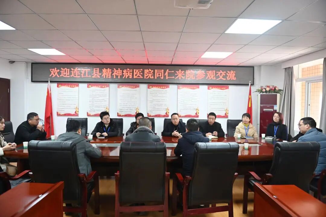 2024年2月29日,為了做好連江縣總醫(yī)院精神分院前期籌備工作,連江縣總醫(yī)院副院長(zhǎng)謝祥彬一行8人到我院參觀交流。我院紀(jì)家武副院長(zhǎng)、林耀平副院長(zhǎng)及相關(guān)部門負(fù)責(zé)人參加座談會(huì)。
