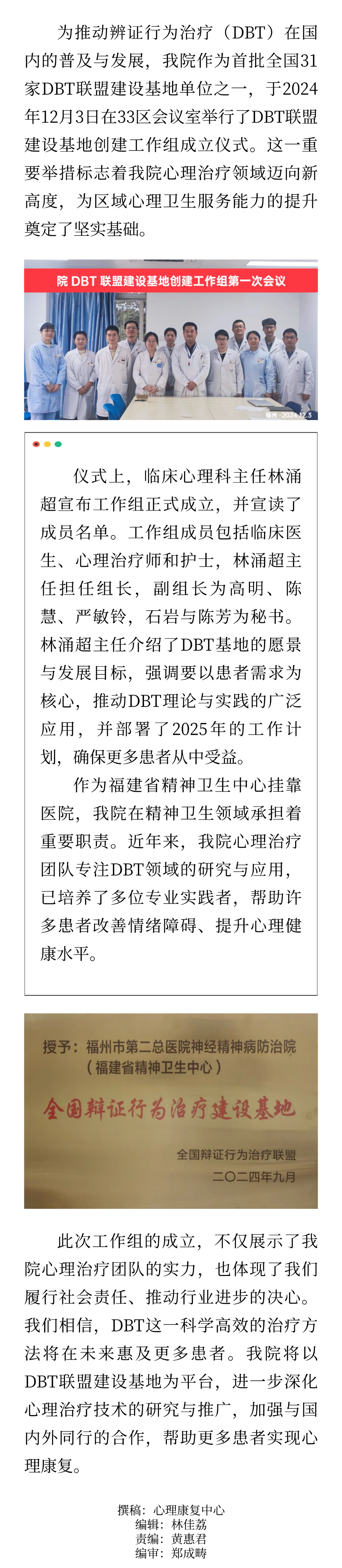【醫(yī)院動態(tài)】我院成立DBT聯(lián)盟建設(shè)基地創(chuàng)建工作組,推動心理治療新發(fā)展