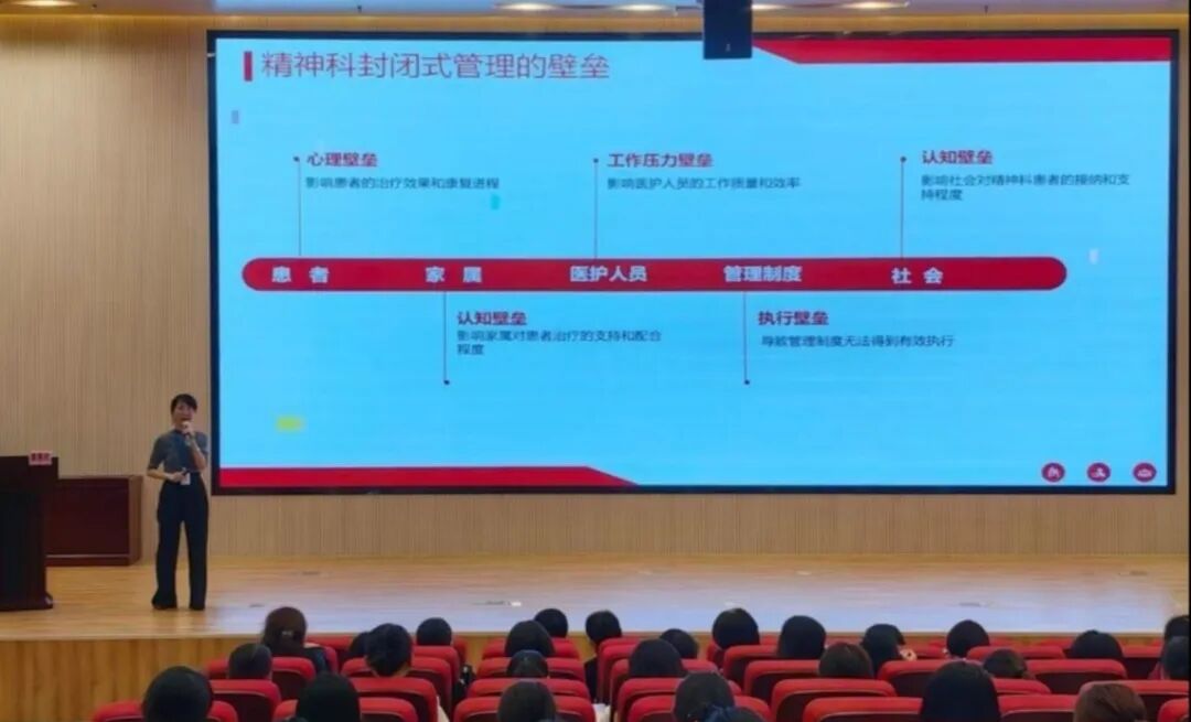 福建省護理學會精神衛(wèi)生專業(yè)委員會主任委員鄭婉玲主任護師講解了《老年器質(zhì)性精神障礙的護理》,結(jié)合具體病例闡述了老年護理的迫切需求與器質(zhì)性精神障礙的護理要點。福州市第二總醫(yī)院護理部主任陳鳳翔主任護師通過《精益化管理促進護理質(zhì)量提升》的授課,強調(diào)了質(zhì)量管理在護理工作中的核心作用,并展示了如何通過多學科聯(lián)動與規(guī)范護理來降低醫(yī)療風險。福州市第二總醫(yī)院神經(jīng)精神病防治院護理部主任黃惠君則聚焦《打破封閉壁壘 提升患者體驗》,探討了精神科封閉管理的現(xiàn)狀與挑戰(zhàn),以及如何通過開放、包容、創(chuàng)新的管理理念來提升患者與家屬的就醫(yī)體驗。
