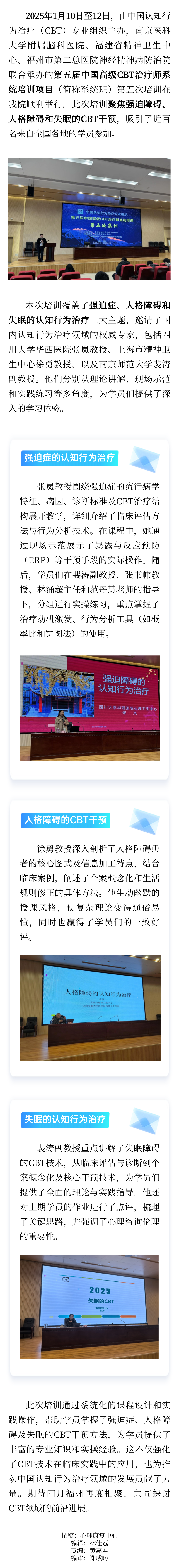 破解強迫癥、人格障礙與失眠難題,中國高級CBT治療師系統(tǒng)培訓項目再掀熱潮
