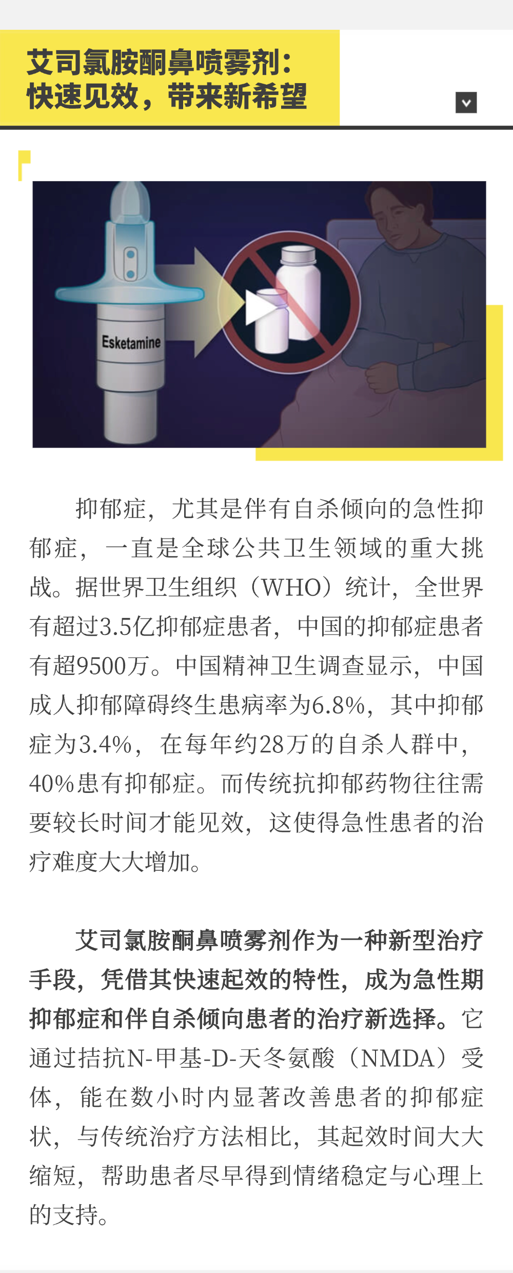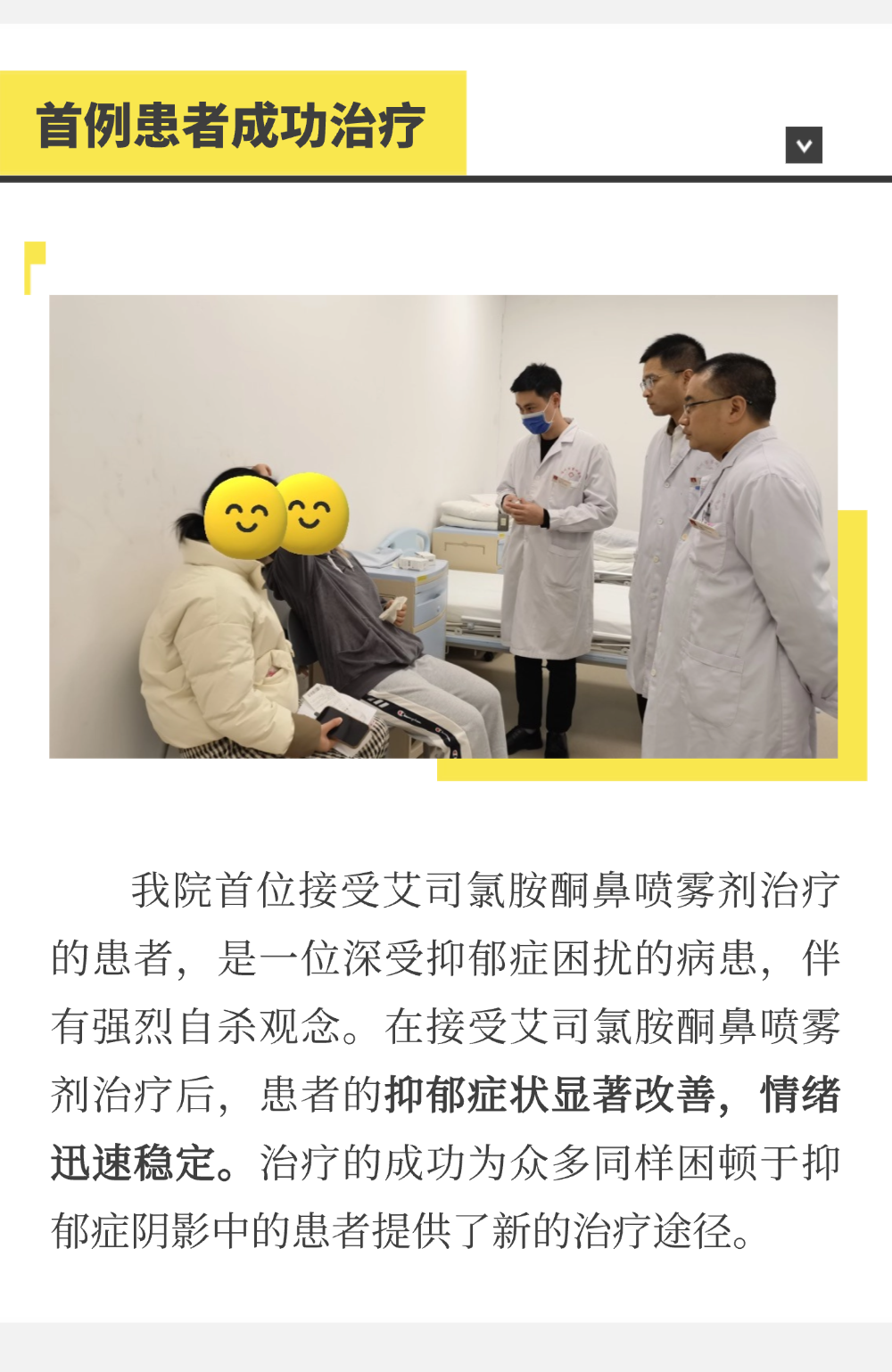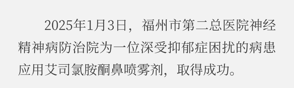 抑郁癥伴自殺治療新突破!我院成功實施首例艾司氯胺酮鼻噴霧劑治療