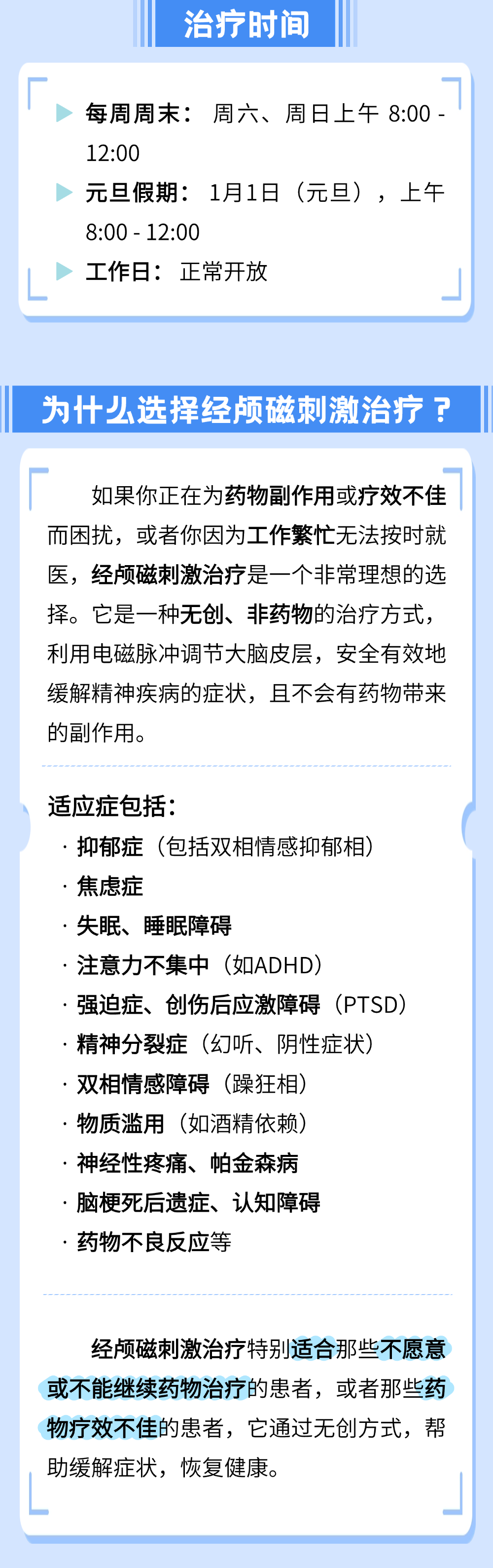 假日無休!元旦、周末也可以預(yù)約經(jīng)顱磁刺激治療啦!
