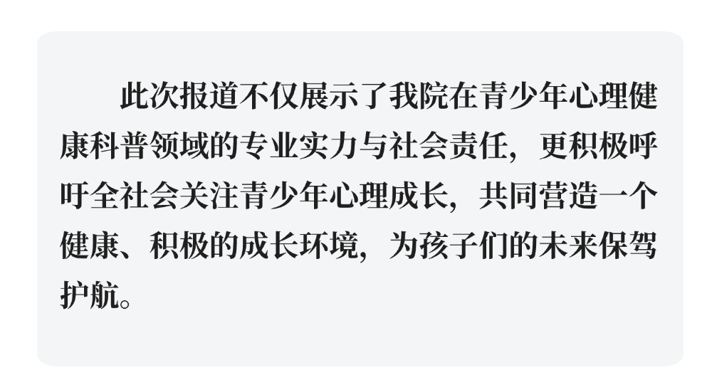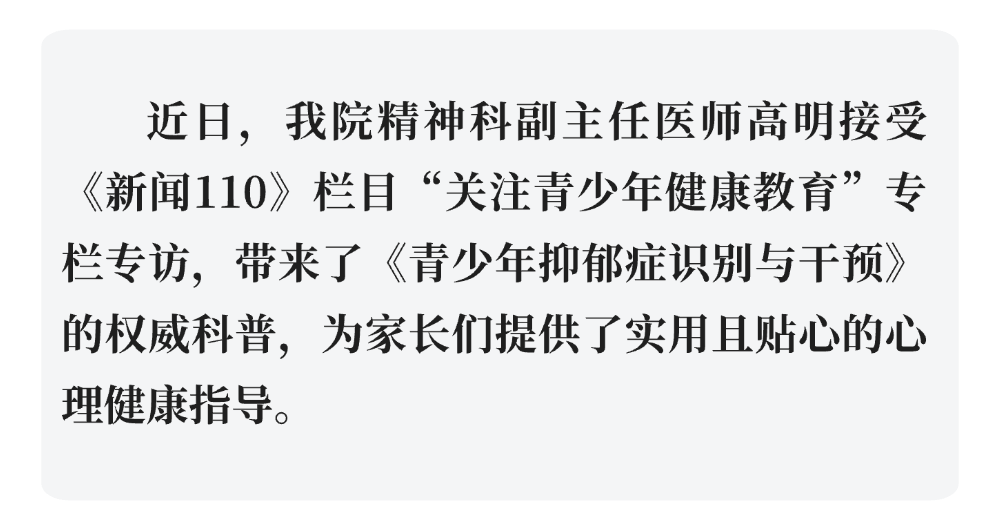 【媒體報道】我院攜手《新聞110》欄目 聚焦青少年抑郁問題