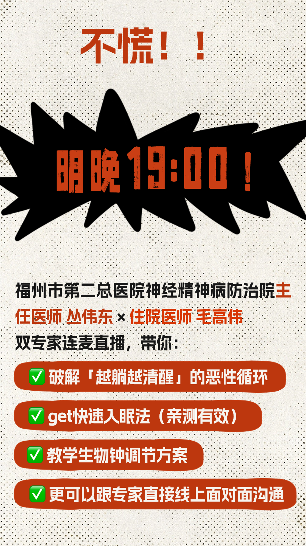 明晚19:00,直播揭曉倒頭就睡的秘訣!失眠的你,還不預(yù)約?