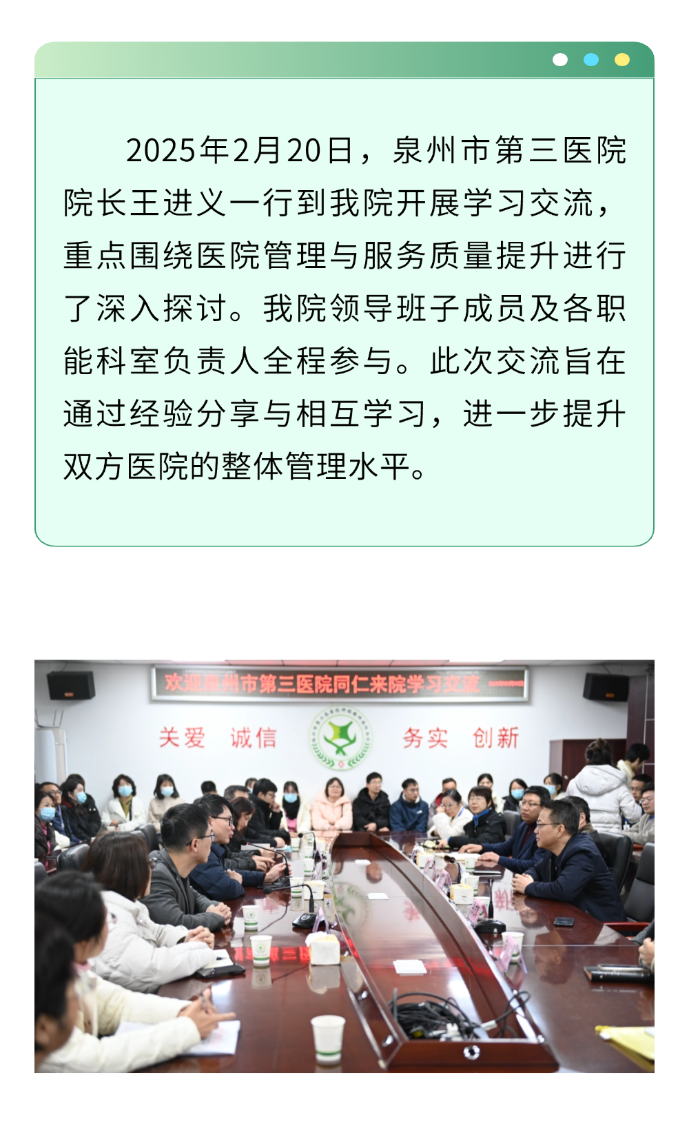 泉州市第三醫(yī)院王進義院長一行到我院交流學習