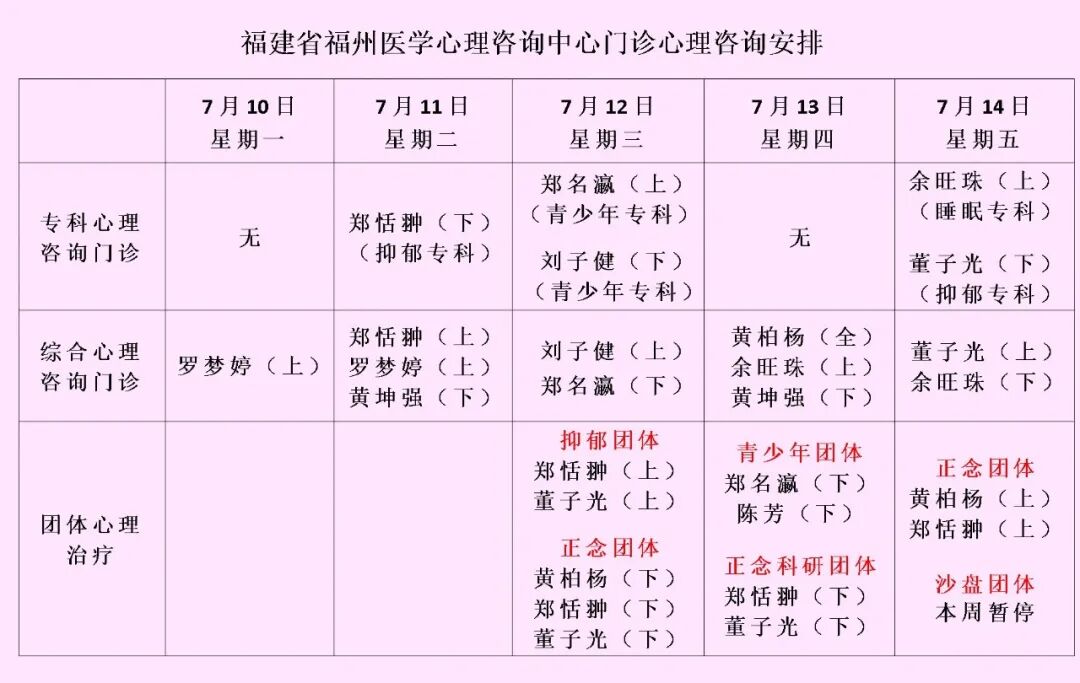 備注:本周周四黃益群醫(yī)生停診,沙盤(pán)團(tuán)體停診。